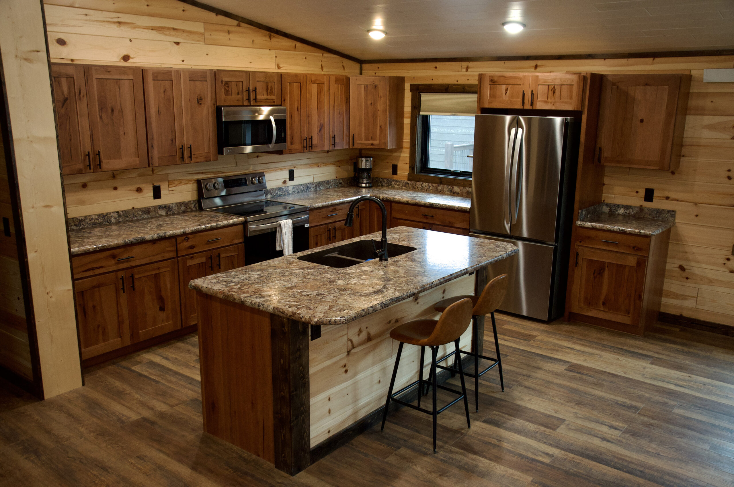 This spacious six-bedroom log house accommodates up to 11 guests, though eight is ideal for comfort. It includes a full kitchen, dining room, and cozy living area. With beautiful views from the front porch, it’s perfect for families or group gatherings.