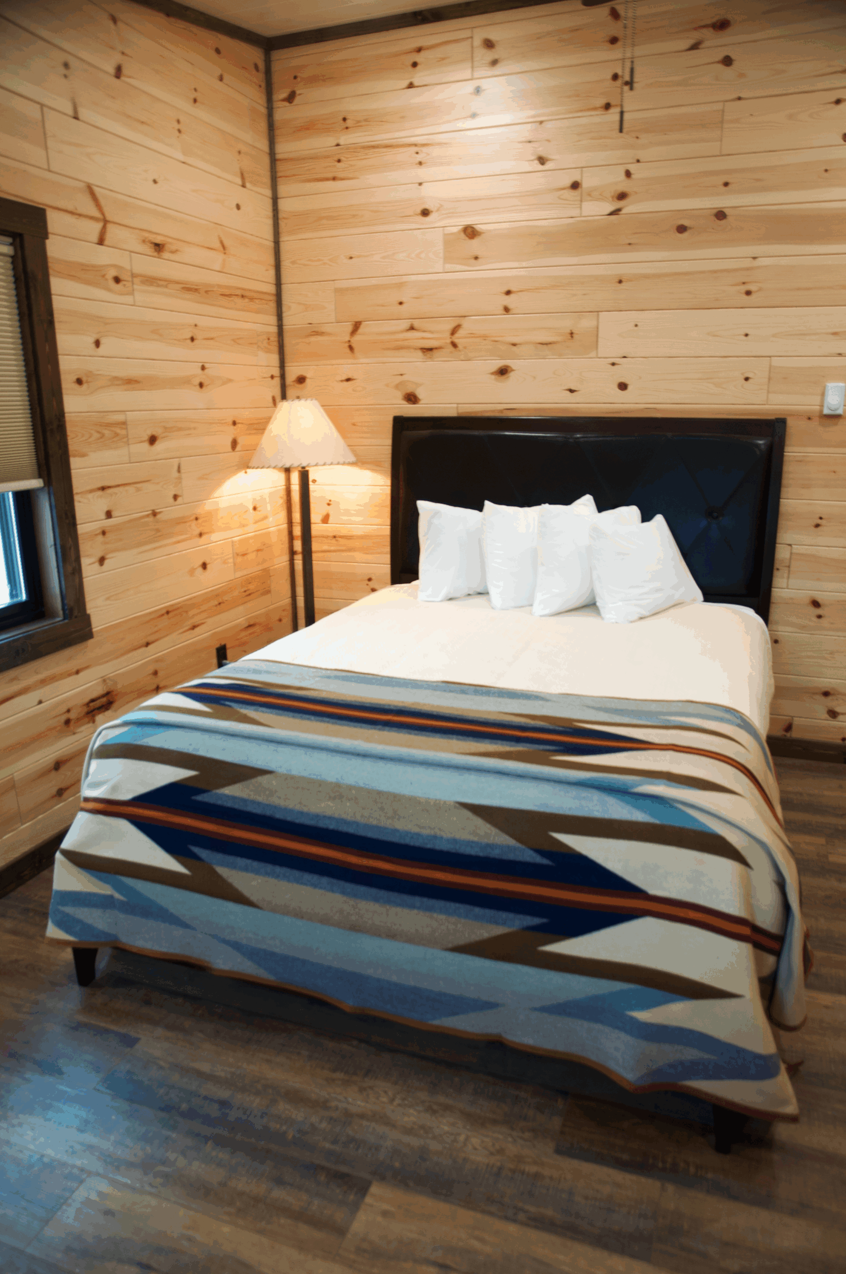 These charming two-bedroom, one-bath cabins are nestled among aspen trees, overlooking a trout pond. With a loft and secluded porch, the A-Frames offer a cozy retreat with a touch of rustic elegance.